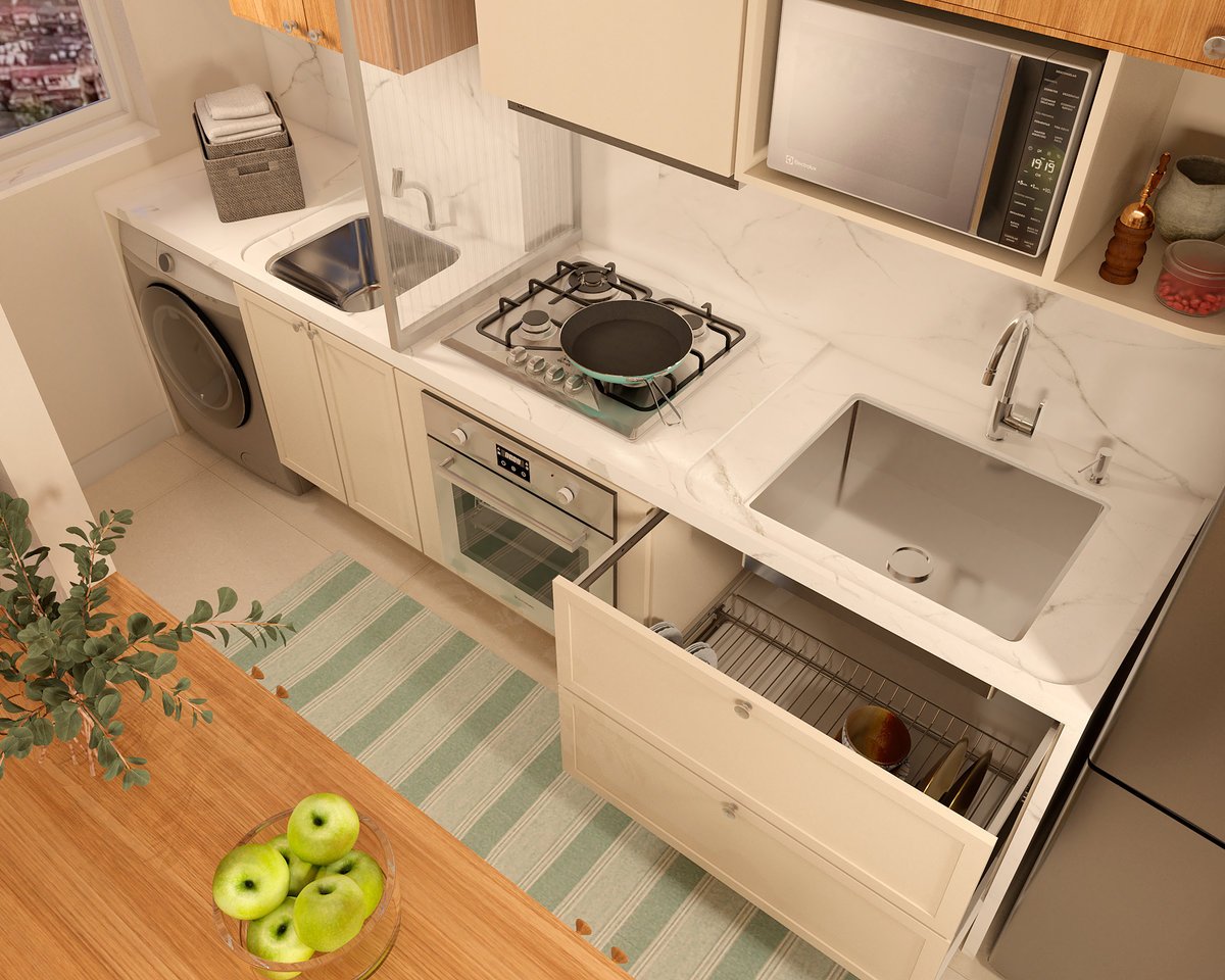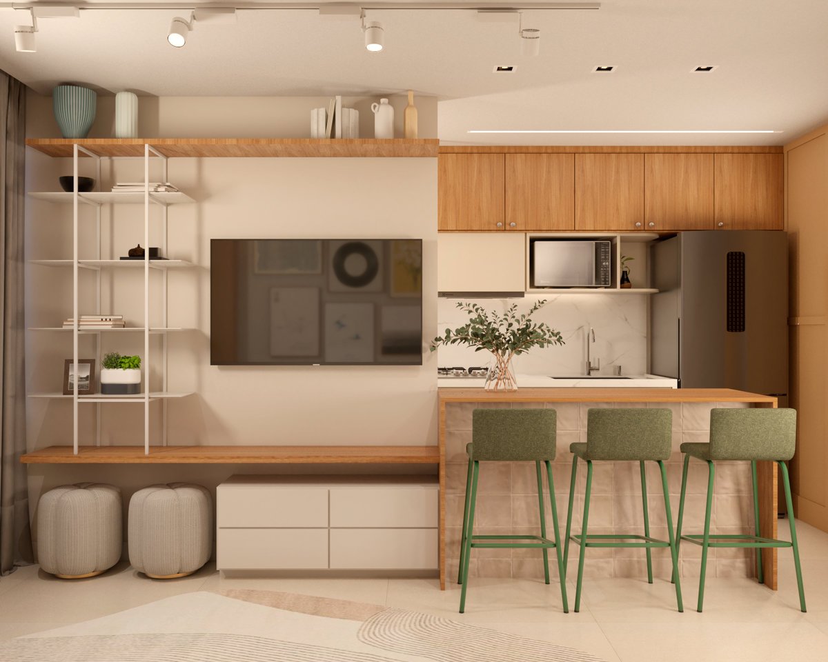 Em 42m² no coração do Rio, criamos um refúgio prático e acolhedor para uma mulher que vive entre embarques e desembarques. O apartamento foi todo adaptado para oferecer conforto nos dias em terra: mais armazenamento, cozinha funcional e até um quarto de hóspedes para receber com carinho. Cada centímetro foi pensado para tornar a rotina mais leve e organizada. Um lar compacto, mas cheio de soluções inteligentes e bem-estar.